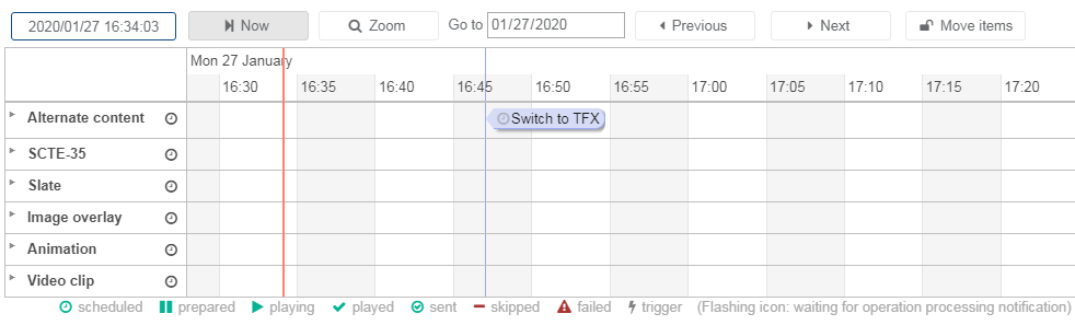 The operation is added to the timeline. At the scheduled time, the channel will switch to TFX.
