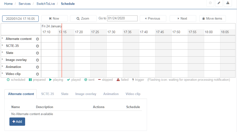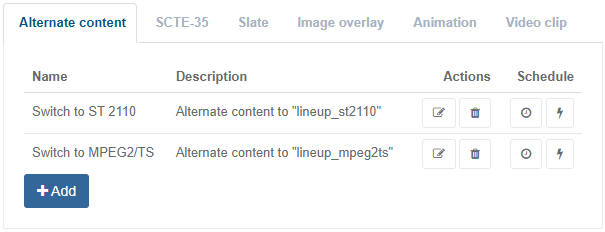 Repeat step #4 with lineup_st2110 as Input ID then click OK to validate. The operation is added to the list of alternate contents. You should get the following: