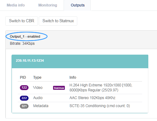 You can go to the Statistics > Outputs to view the encoder status (enabled/disabled).