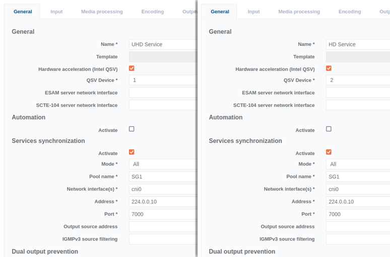 The dual output prevention feature allows the operator to prevent from duplicate media multicast on the same network, especially in the case of active/active encoders.