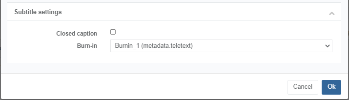 For each video stream, click then go to the Subtitle settings section and select a subtitle burn-in that you just created.