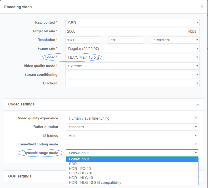 You can configure HDR signaling conversion in the encoding options, or choose to keep the initial input ‘as is’ using the Follow input option.