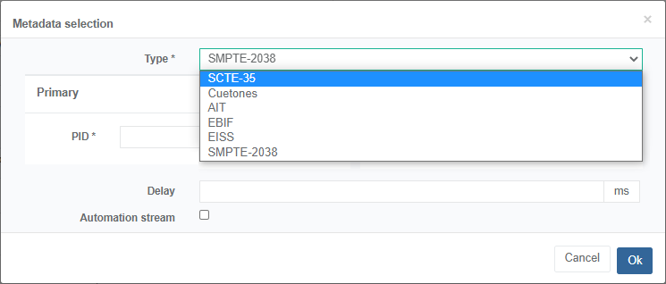 If you selected SCTE-35 type, you can apply a Delay.