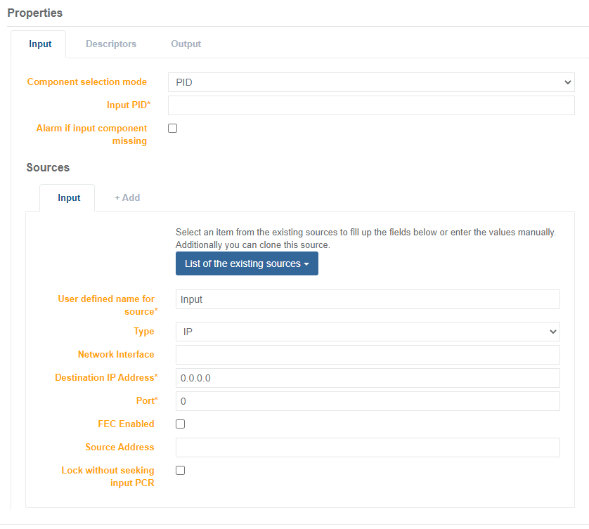 Click to edit the service and display parameters. The transport stream parameters display.