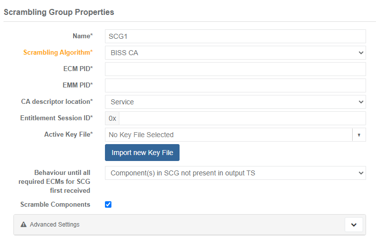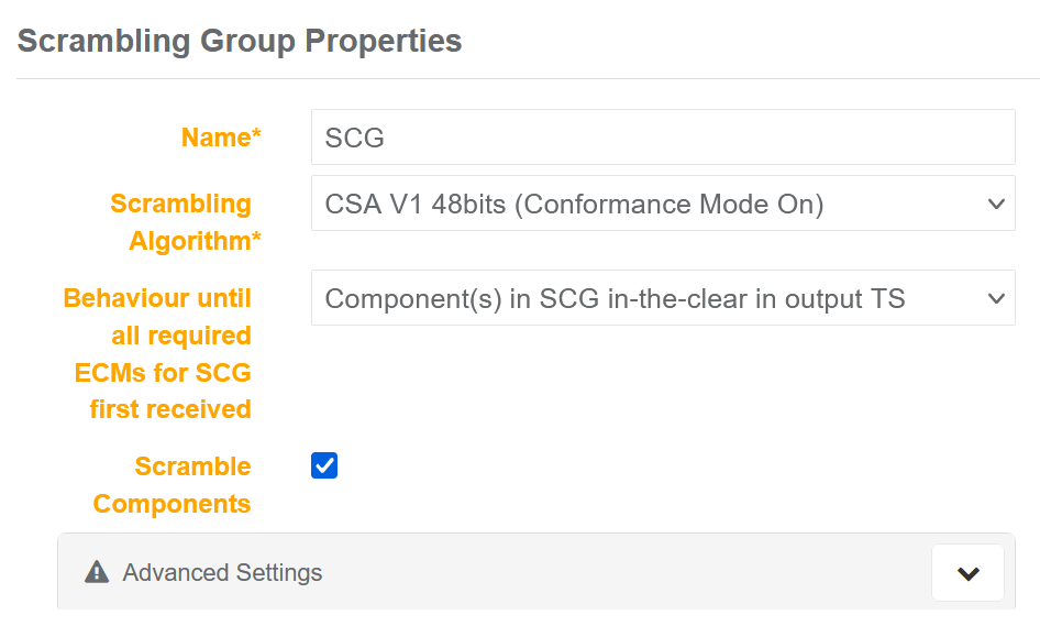 The ECMG configuration will be used to create ECMs that scramble services and components.
