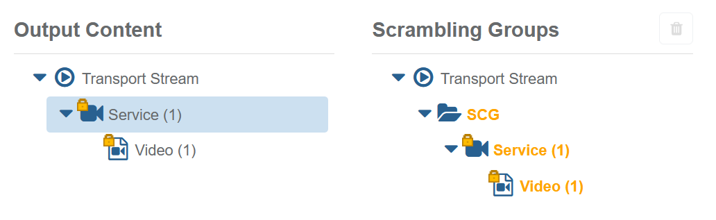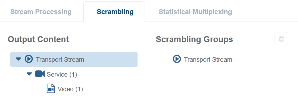 Drag and drop Service 1 to the Transport Stream in the Scrambling Groups panel.