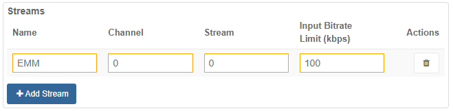 EMMG Streams Configuration Settings