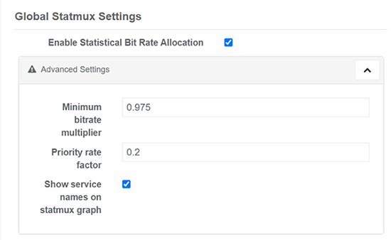 | Video Only | Specify if only Video components are to be included in the statmux pool. | Dropdown menu: Off, On |