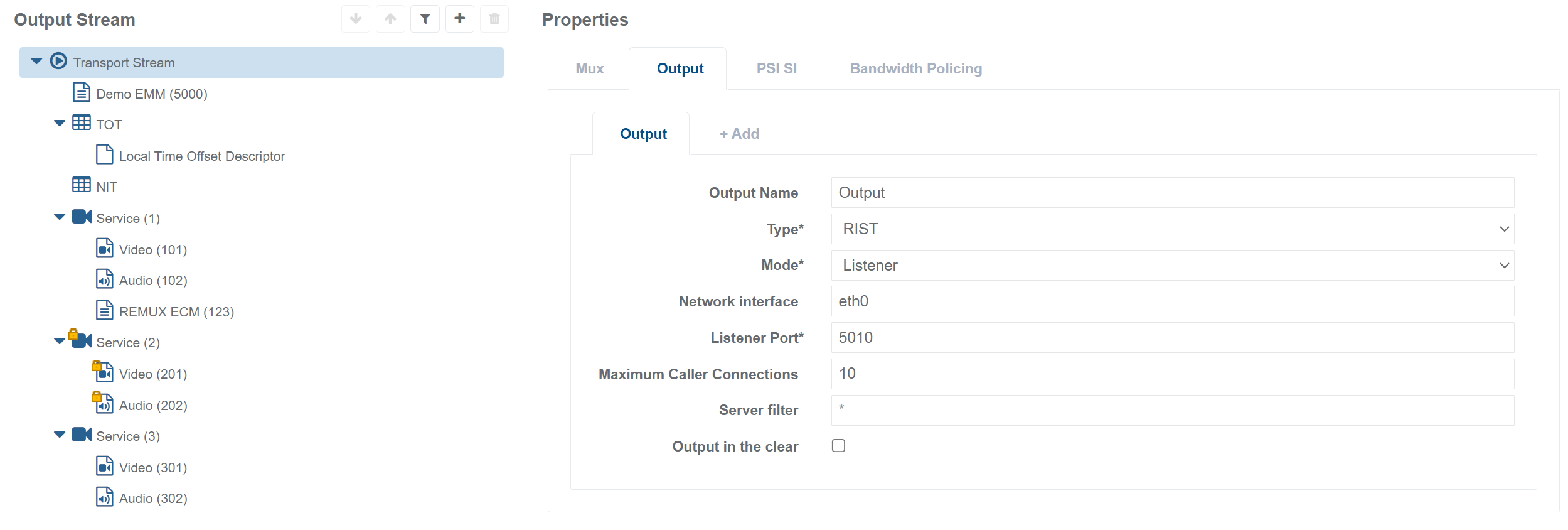 Type*Select the output typeDropdown menu: IP, ASI, RIST