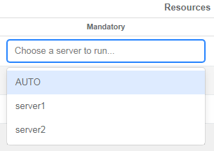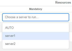 Click the field in the Mandatory column to display available servers.