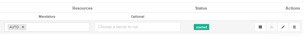 Click the button in the Actions column to start the related service. The service status turns from stopped to started.