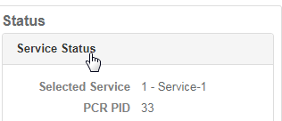 The first video and audio as listed in the service PMT are automatically decoded. The service name and associated PCR PID are displayed in the Service status window.