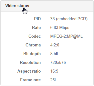 Check the Video Status. The video PID, component bit rate, codec being used, resolution, picture aspect ratio and frame rate are displayed in the Video Status window.