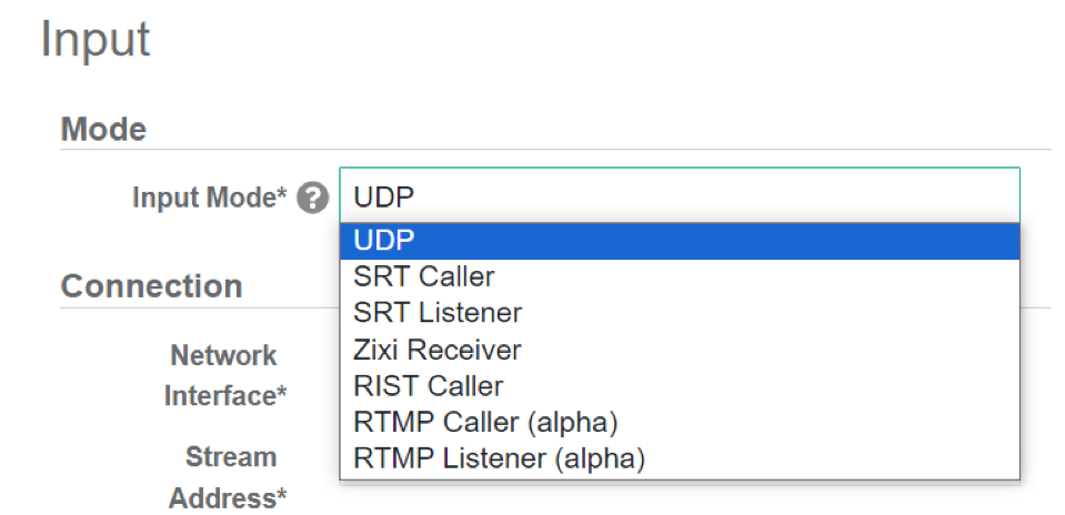 | Stream Address* | Multicast address of the UDP stream | IPv4 address. Does not allow leading zeros. |