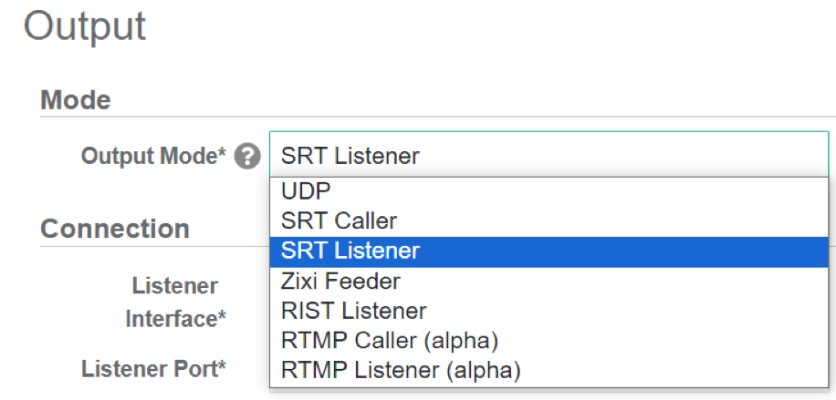 | Listener Port* | Port of the SRT Listener | Integer number between 1024 and 65535 |