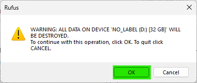 - Check that the correct USB drive is being written to and click OK: