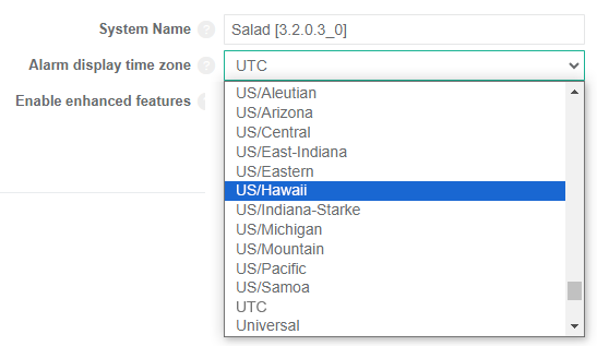 To configure this, click in the top right corner then select the Settings menu. From the General tab, set the Alarm display time zone to the required time zone.