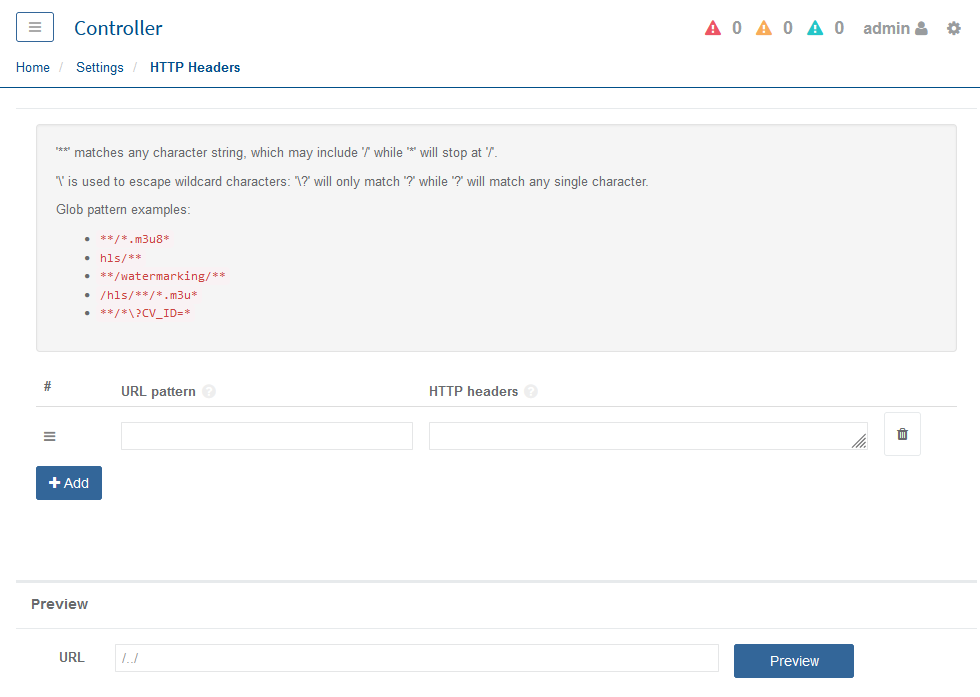Select HTTP Headers. The following page is displayed: