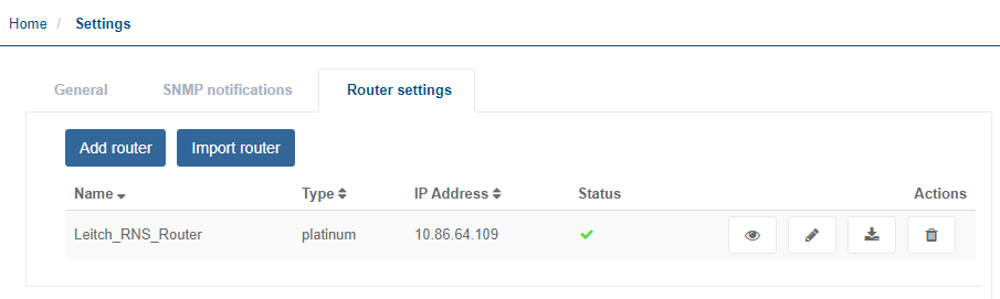 Click Import. The imported file displays in the list in the Router settings tab.