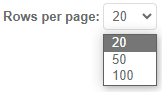 For most menu pages available in the Controller UI, you can display more or less rows in the table by selecting the number of rows to display.